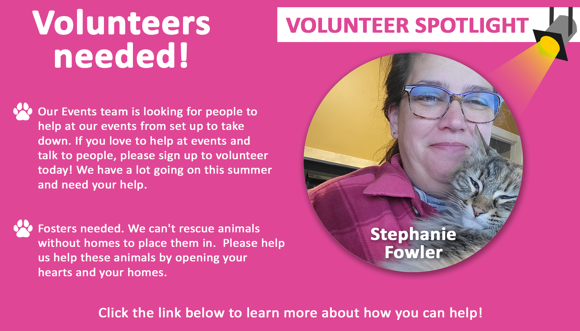 I love the sense of community and pride. We all work together to get these animals into the right homes and with the right families. Everyone plays a part in that process, from intake, medical, fosters, event volunteers and those who work behind the scenes. It takes a village and we have a great one.